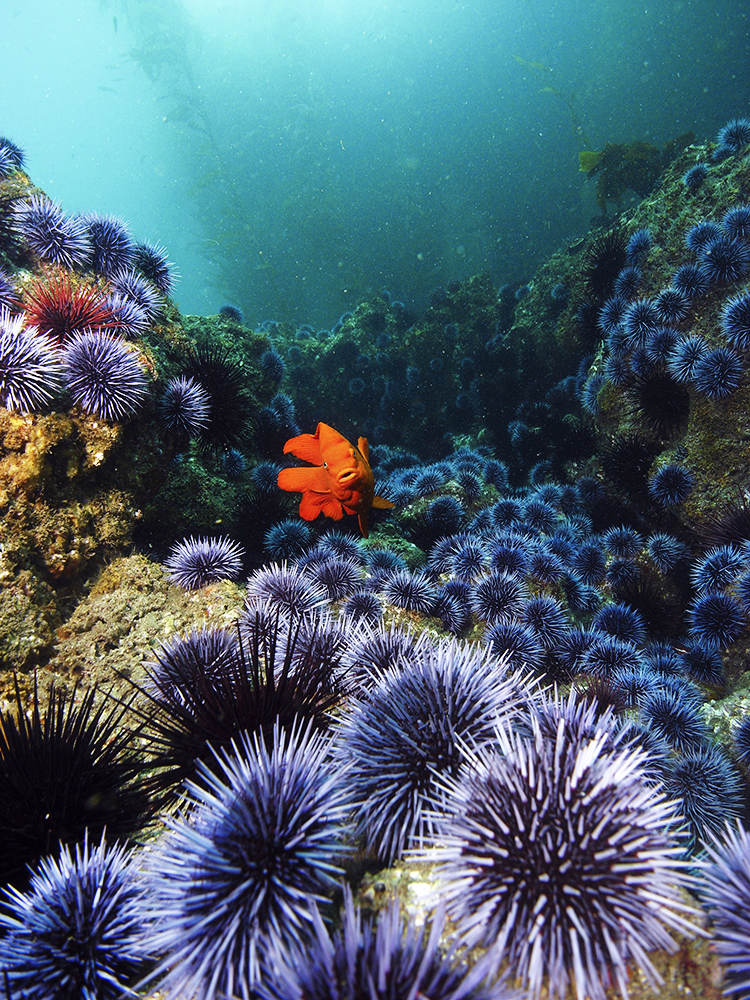 Diving at Cortes Bank can offer spectacular sights like this, but you need to be comfortable with handling rough conditions, which may include cold water, wind, current, and swell. Then there is the location to consider. It is located about 100 miles from both San Pedro and San Diego, California. Since it is an open water seamount and there is nothing to shelter you from the elements, the conditions have to be right for the dive boat to make it out there. This year, Ocean Safari is planning two multi-day trips to Cortes Bank in June and October. Check our website for our local trip schedule!