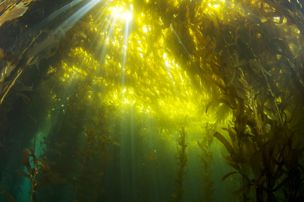 The sunlight filtering in through the amber canopy of the kelp forest. This majestic and mysterious sight is a special treat reserved only for those divers who are willing to put on the 7mm wetsuit or dry suit and jump into the cold California water. A chance to swim through a dense forest of giant kelp (Macrocystis pyrifera) when the lighting is just right is one of the reasons why many of us keep diving here.