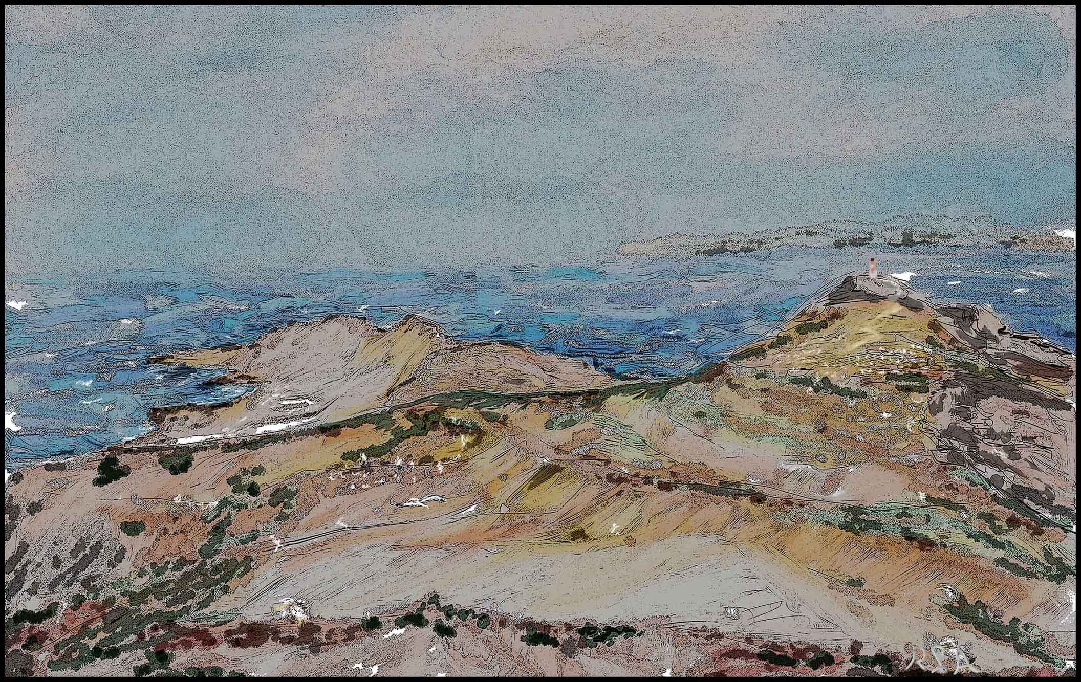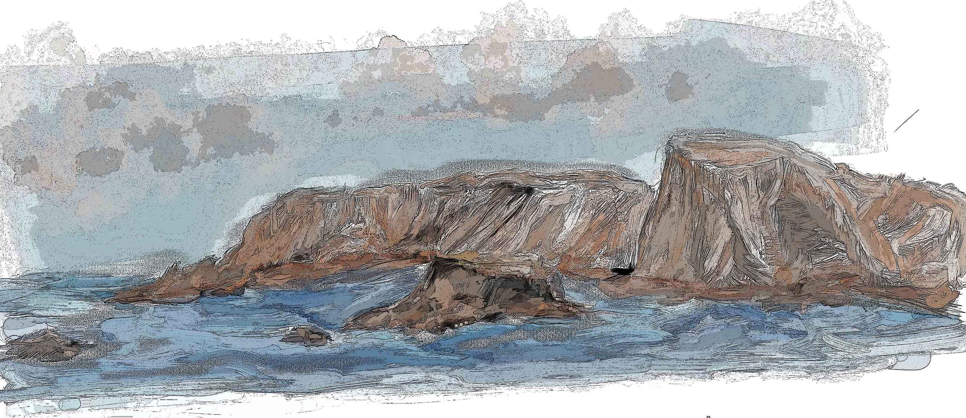Seal Cove, Westside of San Clemente Island, Our last dive of the trip was at a lovely site called Swiss Cheese, a rocky outcrop filled with small and large passageways, the sunlight came out and the kelp was beautiful ,, at the end of the dive i had a moment to make a quick sketch, which i finished up once i returned home